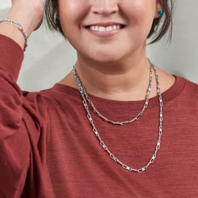Twisted Wire Link Gemstone Necklace in Sterling Silver