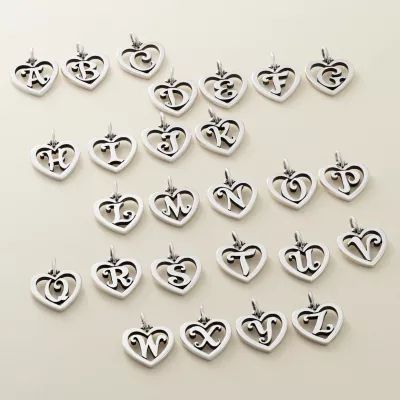 Keep your initials (and the initials of loved ones) close with you wherever you go thanks to the Heart Script Initial Charm. Originally released in 1982, this classic Avery heart charm is available in sterling silver or 14K gold and is available in letters A-Z. It features an open, classic font cut out from a traditional heart shape in the metal of your choice. Pair with a design featuring a birthstone or engraving for an added special touch. Designs From Our Archives. CM-5967 Specifications